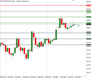Dunia memasuki fase baru dimana ekonomi Amerika Serikat terlihat masih tumbuh, inflasi mereda tetapi fondasi geopolitik semakin rapuh bahkan meningkat. Pada kuartal ketiga, pertumbuhan ekonomi AS berada pada level 4,4%, indikator inflasi favorit Fed bulan November dilevel 2,8%, pendapatan pribadi meningkat moderat, konsumsi meningkat 0,5%, tetapi geopolitik semakin tidak menentu. Kesepakatan Greenland meninggalkan tanda tanya besar. Tidak ada detail kesepakatan, tidak jelas siapa yang menyetujui, karena Denmark dan Greenland bahkan menyatakan tidak mengetahui isi kesepakatan tersebut. Perdana Menteri Greenland, Jens Frederik Nielsen dengan tegas mengatakan bahwa kedaulatan serta integritas wilayah adalah garis merah yang tidak bisa dinegoisasikan. Beberapa analis mengatakan bahwa sikap Trump melunak bukan karena Eropa, melainkan karena lonjakan imbal hasil obligasi global. Ketika pasar obligasi mulai naik, maka biaya ekonomi dari perang dagang menjadi terlalu mahal untuk diabaikan.