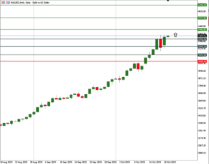 Pasar keuangan Amerika Serikat saat ini sedang memperhatikan issue yang berkembang selain Fed yang akan kembali memangkas suku bunga nya akhir bulan ini. Issue masalah Jeffries Financial Group serta Zions Bank menjadi ancaman terbesar atas pertumbuhan ekonomi Amerika Serikat saat ini. Jika ini meluas maka bencana keuangan domestic dan global akan terjadi. Disisi lain ada berita postif yang membuat pasar saham Amerika Serikat kembali rebound menguat, karena Presiden Amerika Serikat Donald Trump dan Presiden China Xi Jinping akan bertemu di Korea Selatan pada KTT negara APEC. Walaupun pertemuan ini belum tentu dapat mengakhiri perang dagang, tetapi setidaknya pasar melihat adanya harapan bahwa kedua Presiden dapat meredakan konflik yang memanas saat ini. Selain itu Presiden AS dan Perdana Menteri Australia Anthony Albanese, pada hari Senin kemarin menandatangani perjanjian tentang mineral penting dan tanah jarang, dengan nilai proyek senilai $8,5 miliar. Keadaan ini tentunya disambut para pelaku pasar dengan risk on ditengah ketidakpastian yang tinggi.