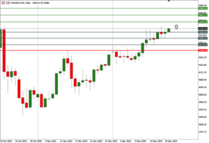 Pelemahan mata uang Yen terjadi tepat setelah Bank of Japan menaikan suku bunga nya menjadi 0.75%. Yen melemah pasca kenaikan suku bunga BOJ ini menunjukan bahwa pasar tidak lagi bereaksi pada aksi kebijakan, melainkan pada arah kebijakan kedepan (Policy Path). Menteri Keuangan Jepang, Satsuki Katayama, menegaskan bahwa pemerintah akan mengambil tindakan yang tepat untuk menghadapi volatilitas nilai tukar yang berlebihan, terutama jika pergerakan tersebut besifat sepihak dan didorong spekulasi. Pernyataan ini mengacu pada kesepakatan bilateral AS-Jepang, yang menegaskan bahwa intervensi mata uang hanya dibenarkan dalam kondisi volatilitas ekstrem bukan sekedar pelemahan normal. Namun respon pasar justru sebaliknya dimana USDJPY naik sekitar 1,2% dan tercatat sebagai kenaikan terbesar sejak bulan Oktober. Ini menunjukan bahwa kenaikan suku bunga BOJ gagal memberikan “ Kejutan Kebijakan” bagi pasar. Area 160 saat ini dipresepsikan sebagai “ Pain Threshold” dan bukan level psikologis biasa.